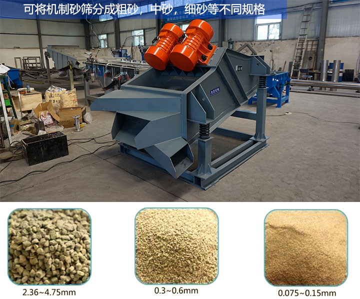 機制砂礦用振動篩是用于機制砂生產中對機制砂原料篩分和除雜的機器,通過電機產生的高頻振動力實現不同粒徑的機制砂原料的分級和分離,這樣可以保證成品機制砂的粒度符合標準;礦用振動篩主要用于對巖石、卵石或礦山尾礦經破碎后的機制砂原料進行篩分,可以將機制砂篩分為粗砂、中砂、細砂以及去除當中的石粉,可用于篩分0.075mm-200mm的機制砂原料,每小時處理量從10噸到500噸,適合不同產量和精度要求的生產場景使用。