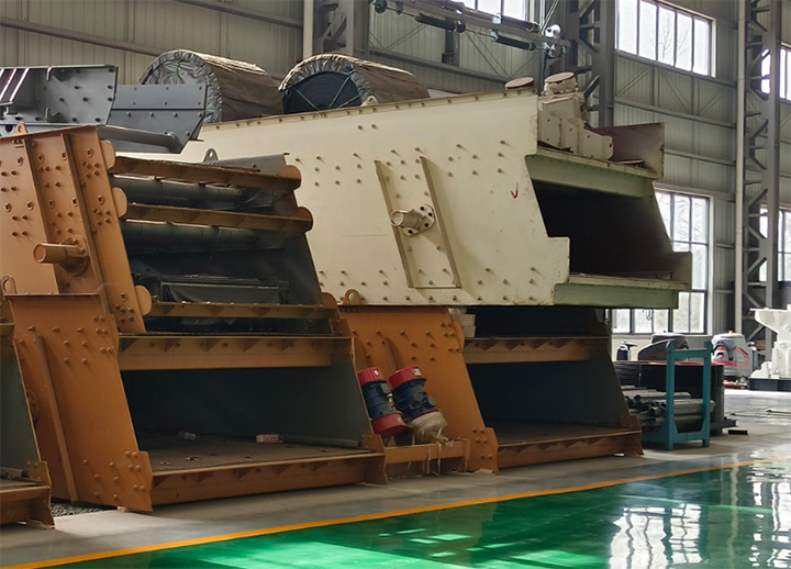 重型振動篩的原理與自定中心振動篩相似,但振動器的主軸完全不偏心,而以皮帶輪的軸孔偏心來達到運轉時自定中心的目的。重型振動篩結構比較堅固,能承受較大的沖擊負荷,適用于篩分大塊度、相對密度大的物料,大給料可達350mm。主要用于中碎前作預先篩分,此外,對含水、含泥量高的物料,可在中碎前進行預先篩分及洗礦,篩上物入中碎機,篩下物進入洗礦脫泥系統。